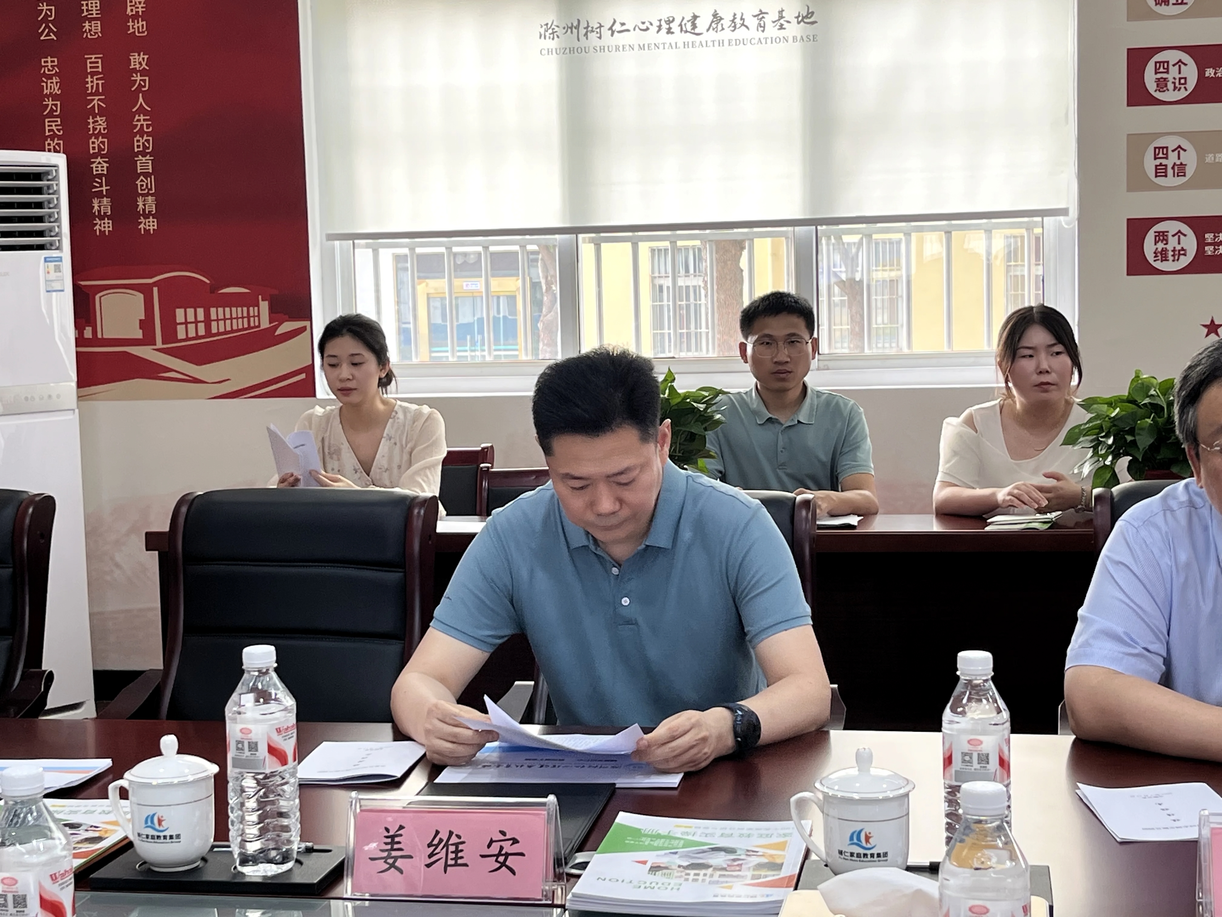7月17日,滁州市委常委、政法委书记龚健勇,市信访局局长王长华,市司法局局长姜维安,市委政法委副书记江海清,市委政法委办公室主任朱一村,以及全椒县委常委、政法委书记吴定高,全椒县六镇镇党委书记任权,全椒县司法局局长周军,全椒县市场监管局局长施健,全椒县民政局局长冯玉林等一行,赴辅仁家庭教育集团旗下的滁州树仁心理健康教育基地进行走访调研。辅仁家庭教育集团董事长任镇全程陪同并参与座谈会议。